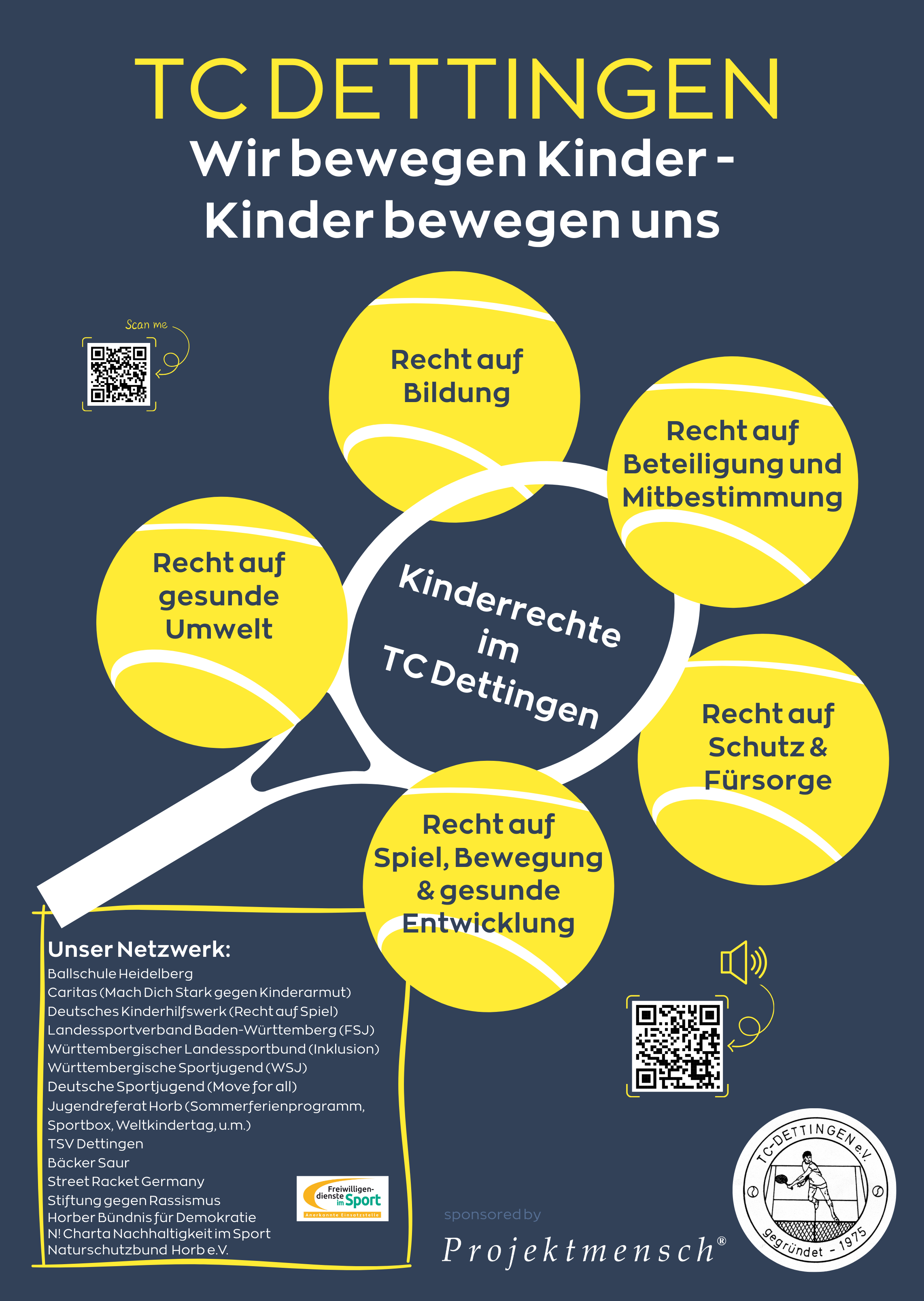 Zum 50-jährigen Vereinsjubiläum im Jahr 2025 hat der Jugendausschuss im TC Dettingen/Horb, ein Tennisverein mit 300 Mitgliedern in Baden-Württemberg, eine Ausstellung über "Kinderrechte im TC Dettingen" erstellt.